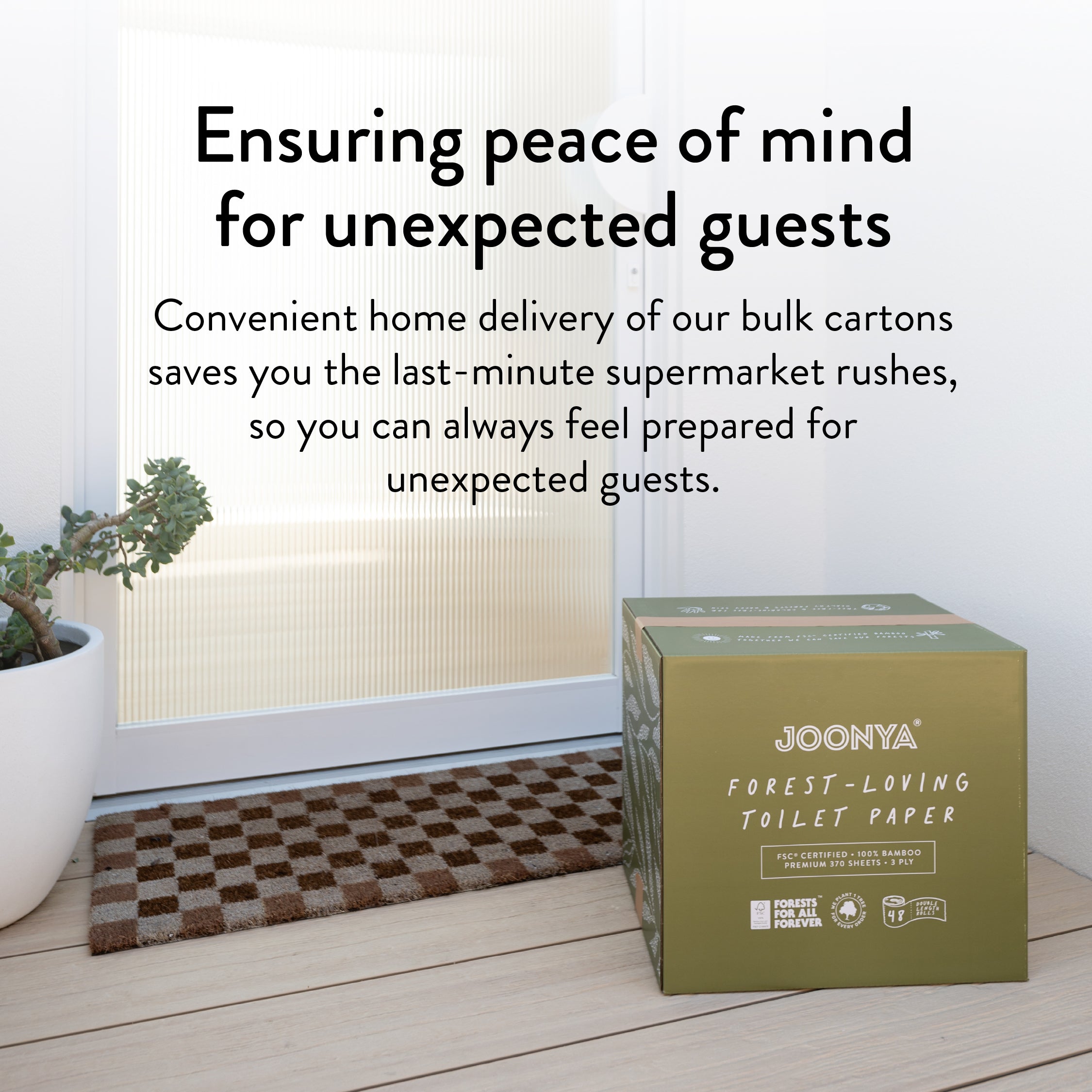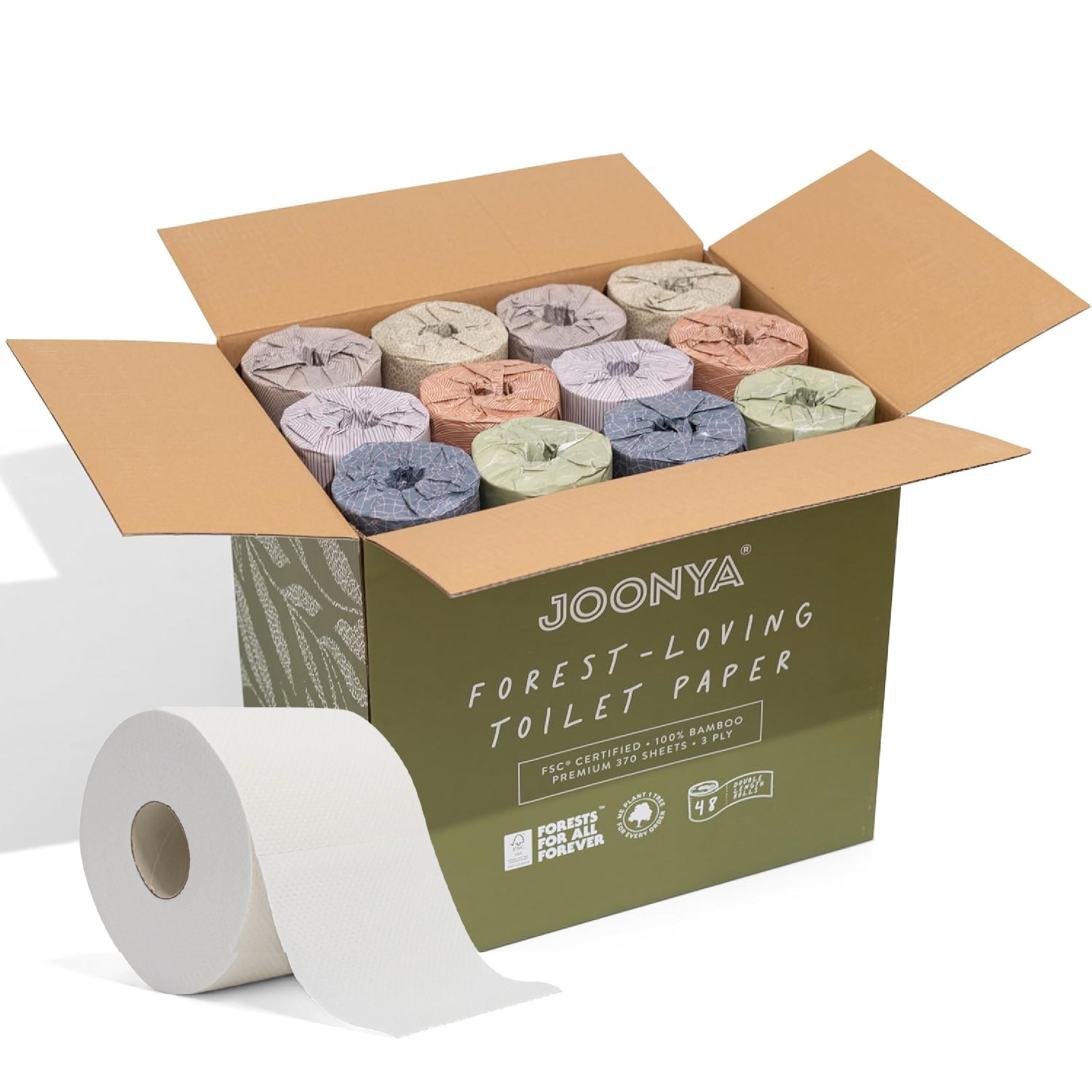 For each toilet paper subscription order placed with Joonya, TREES plants 1 tree.